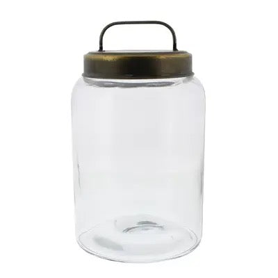 A pretty and practical option for storage, the thick glass jars are topped with a brushed galvanized lid. A hidden rubber seal helps to keep the lid closed tightly and the contents fresh. Capacity Small: 88 oz, Medium: 134oz.